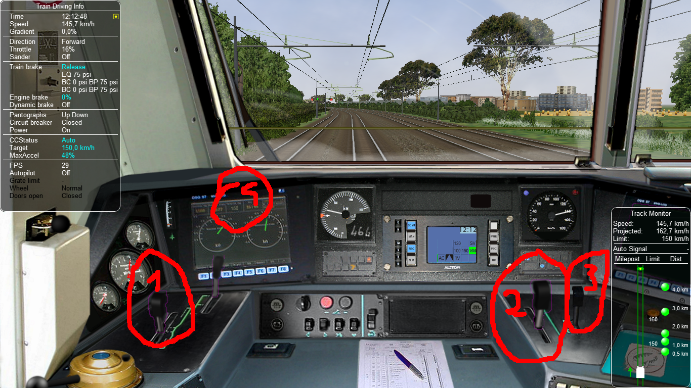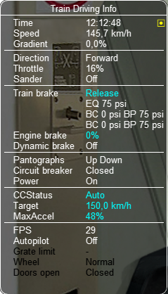 Following info is displayed both in the main HUD and in the Train Driving window: