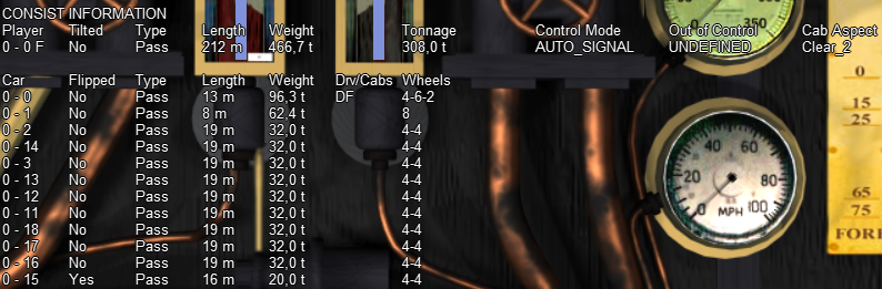 Distance: distance to this signal. Note that if signal state is STOP, and it is the next authority limit, there is a difference of about 30m between authority and signal distance. This is the ‘safety margin’ that AI trains keep to avoid accidentally passing a signal at danger.